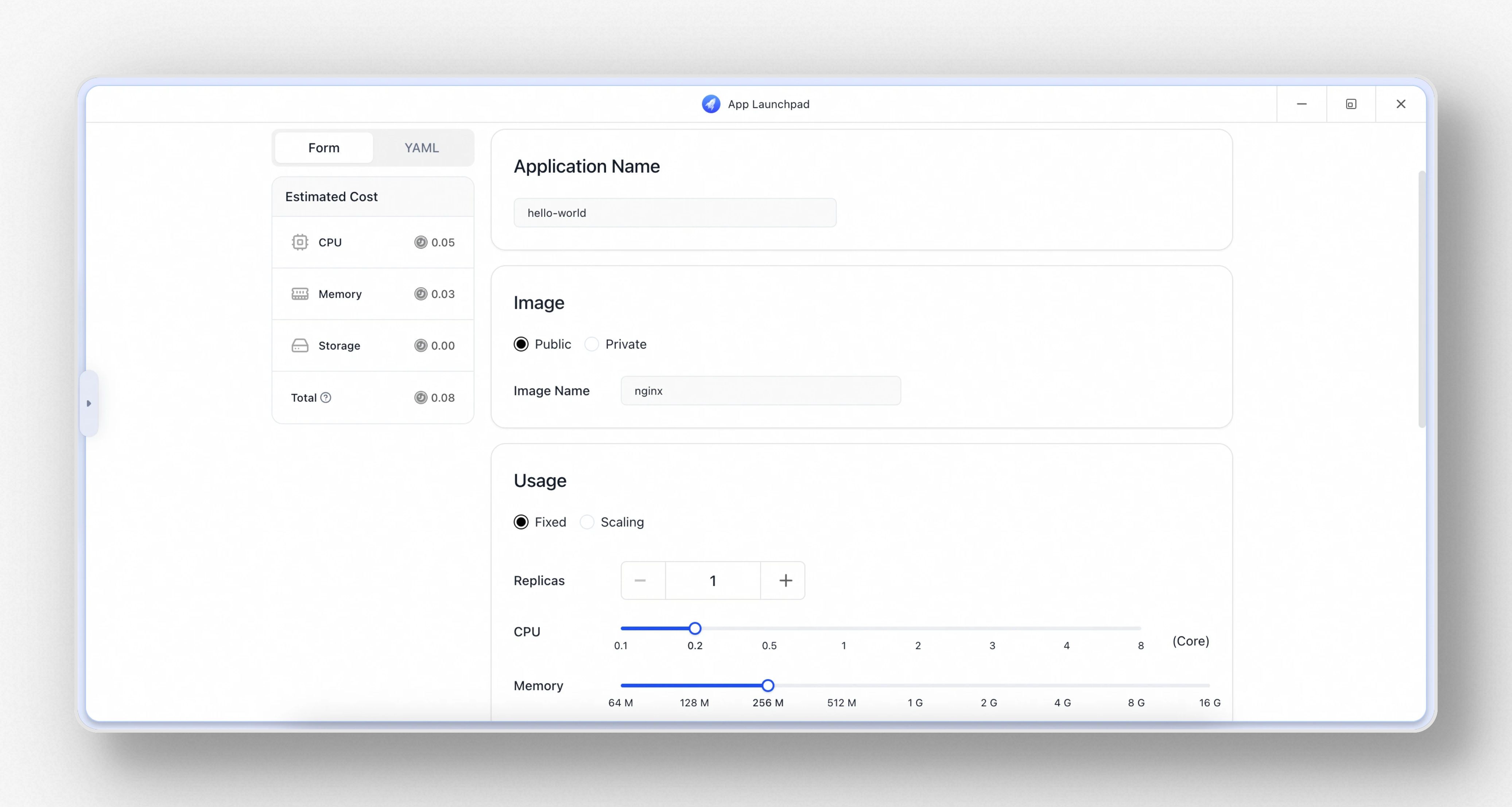 * **Select the deployment mode and configure the parameters:** You can choose between the fixed instance mode or the elastic scaling mode. If you choose the fixed instance mode, you can set the number of instances, CPU, and memory. If you choose the elastic scaling mode, you need to set the basic parameters of CPU and memory, as well as the scaling range of CPU or memory, enabling the application to automatically adjust resources according to the load.