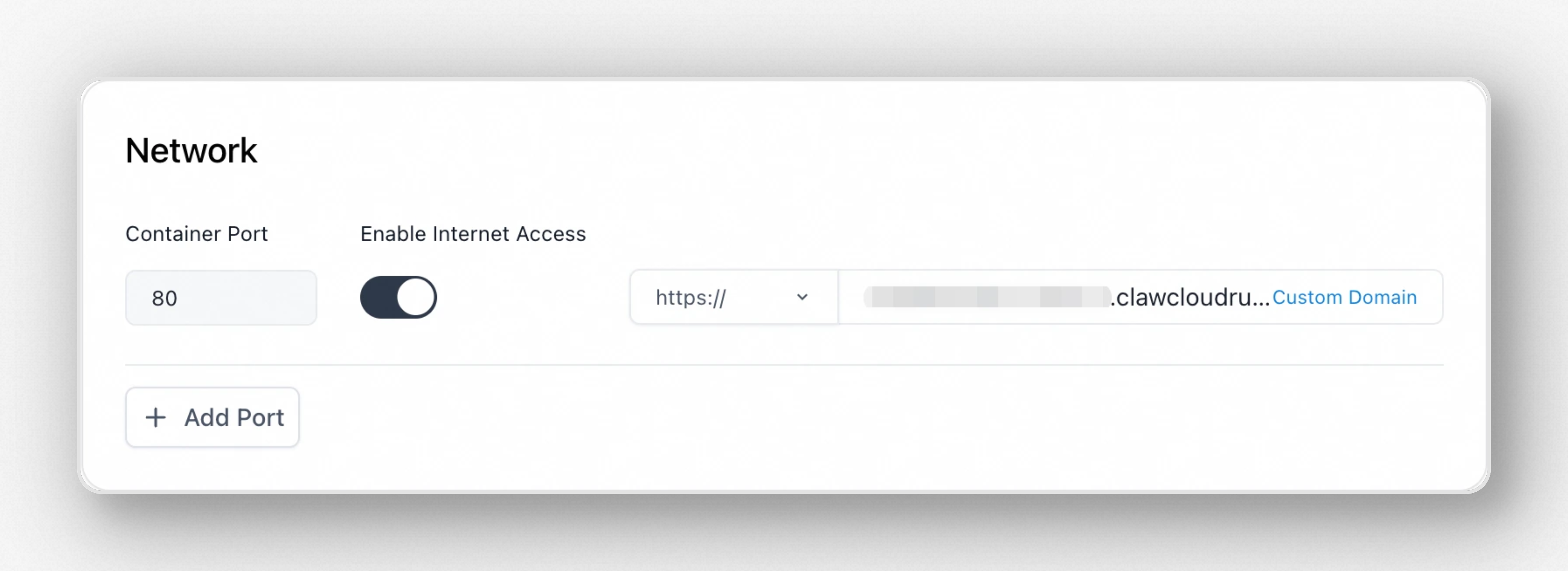 In the network configuration section, you can set the exposed port, which determines the port number through which the application provides services externally. At the same time, choose whether to enable public network access. If enabled, external users can access the application via the public network.